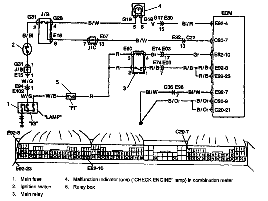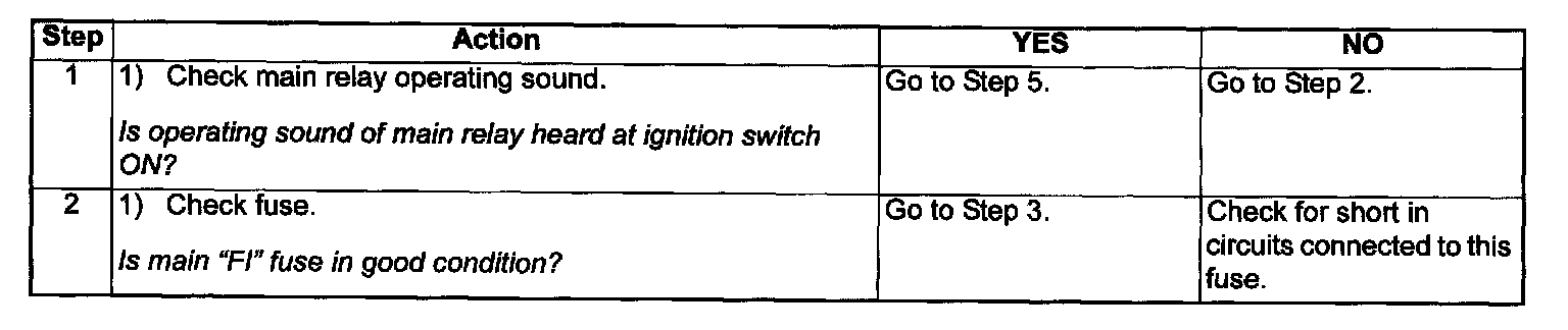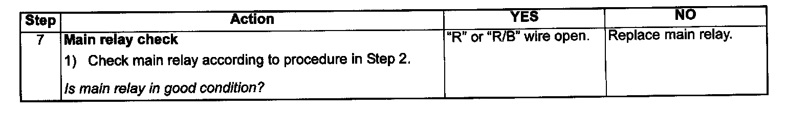 When the ignition switch tuned ON, the main relay turns ON (the contact point closes) and the main power is supplied to ECM.
