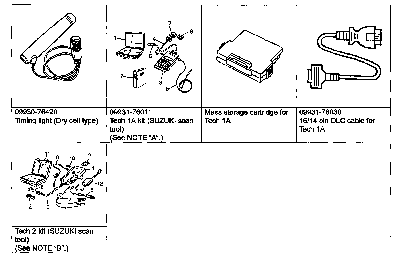 - "B": This kit includes the following items and substitutes for the Tech 1A.