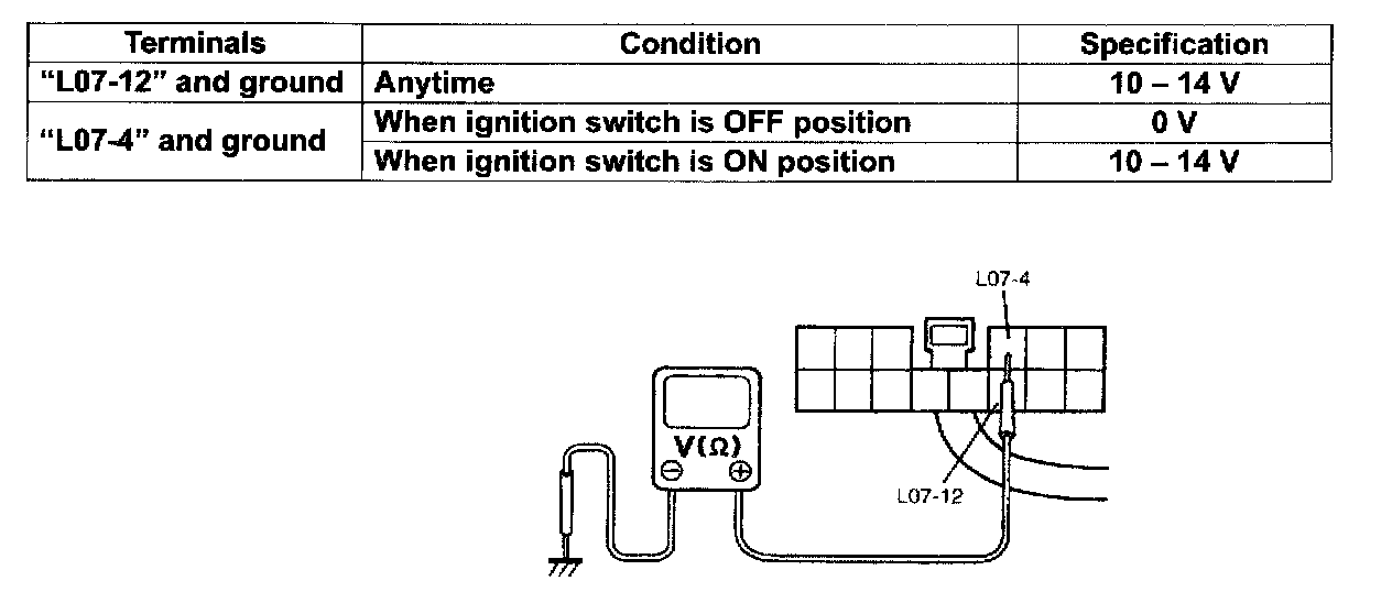 2. Disconnect coupler of power door lock and keyless entry controller, and connect negative cable at battery.