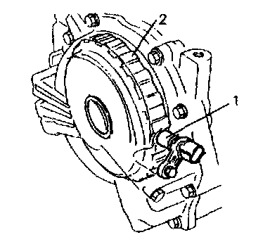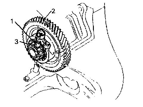 This output shaft speed sensor (1) is a pulse generator type that detects revolution of the counter driven gear (2) (vehicle speed) in the transmission case.