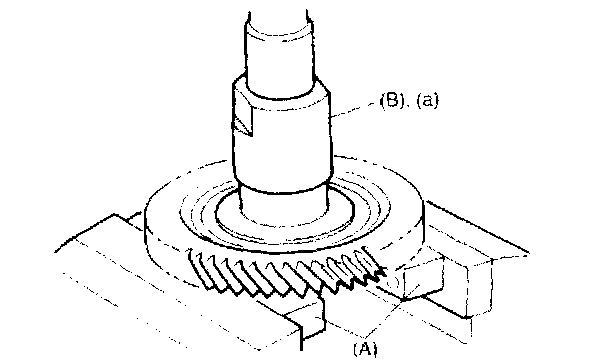 NOTE: When staking lock nut for output shaft speed sensor, point a suitable staking tool (1) toward differential drive pinion shaft (3) axis center and stake lock nut securely, as shown in the figure. (Poor staking may cause abnormal noise.)