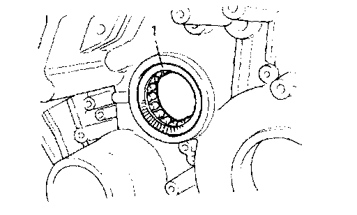 7. Place thrust needle roller bearing (1) and race to transmission case.