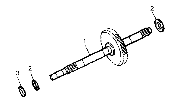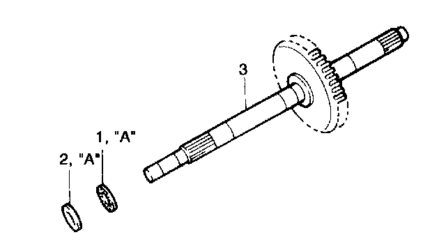 2. Remove input shaft (1) with thrust bearing race (3) and thrust needle roller bearing (2) installed.