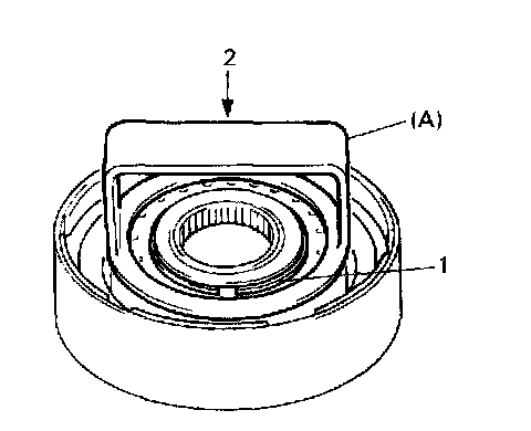 5. Install snap ring (1), using special tool and hydraulic press (2).