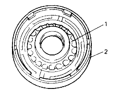 1. Remove reverse clutch drum (1) with bearing from oil pump body.
