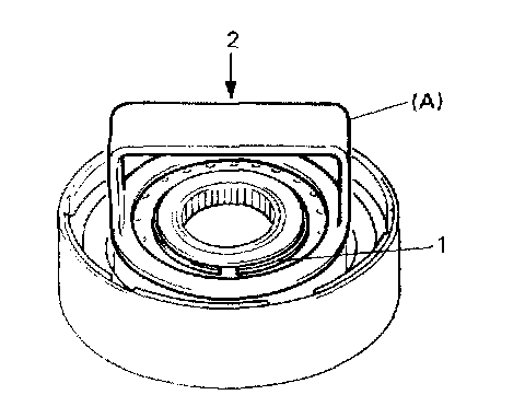 3. Press reverse clutch piston (1) into reverse clutch drum (2) with bearing with cup side up.