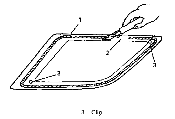 8. When re-using glass, remove adhesive (1) from glass, using care not to damage primer coated surface (2).