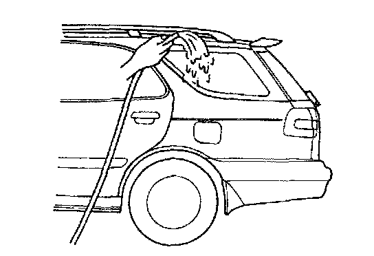 10. Check for water leakage by running water from hose over window. If leakage is found, dry window and fill leaky point with adhesive. If water still leaks even after that, remove glass and start installation procedure all over again.