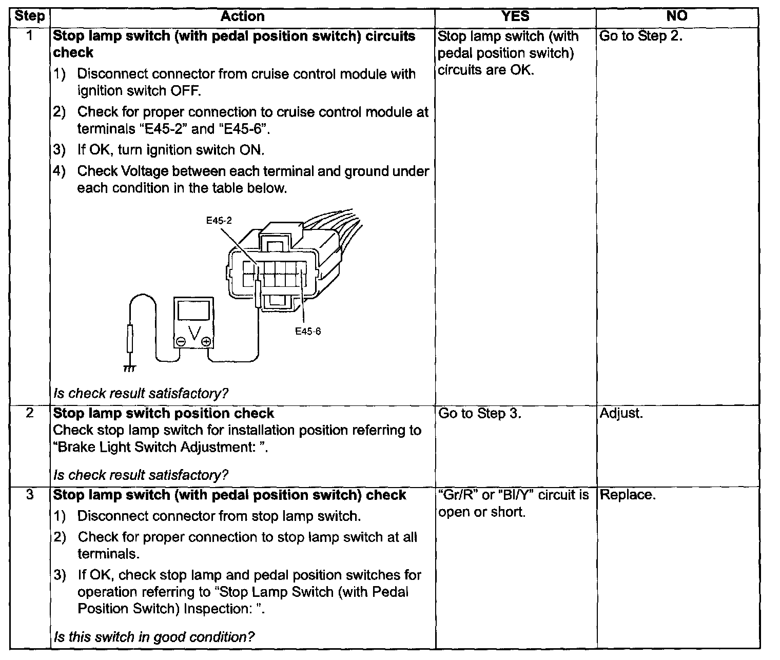 Stop Lamp Switch With Pedal Position Switch Circuits Check
