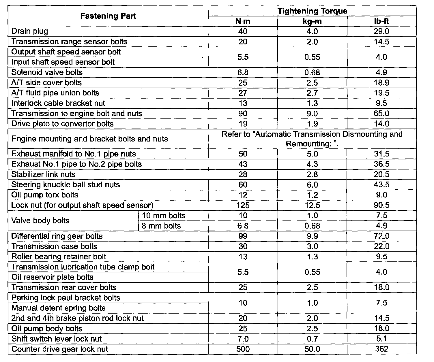 AUTOMATIC TRANSMISSION UNIT COMPONENTS