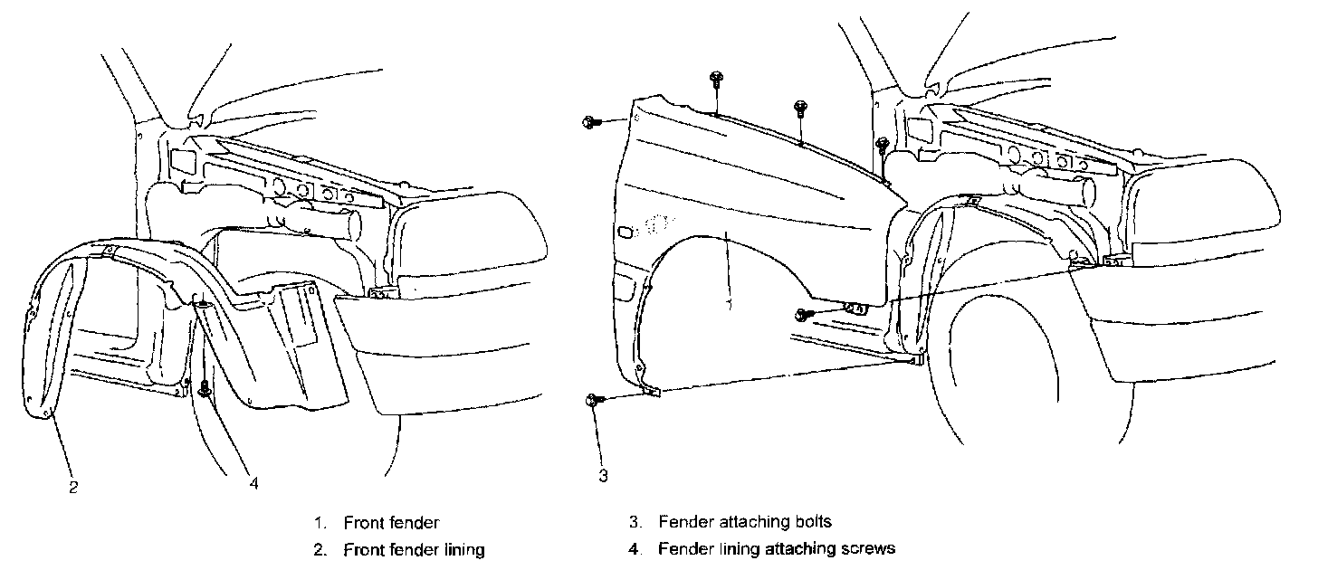 NOTE: If paint on fender bolt is peeled off, be sure to apply paint again.