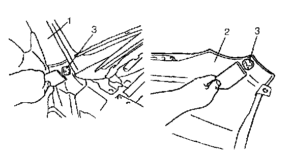 1. Remove pad (3) from side body (1) and (or) fender (2), using care not to damage painted surface.