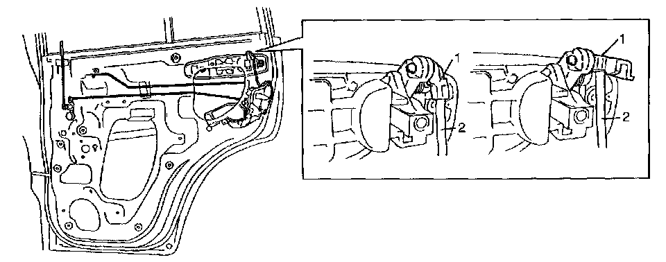 2. Remove door opening control rod (2) and door lock control rod (1).