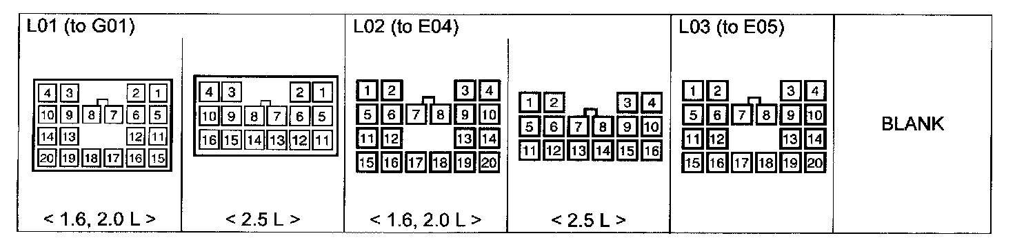 The illustrations below show the harness side connectors, but not the component side connectors.