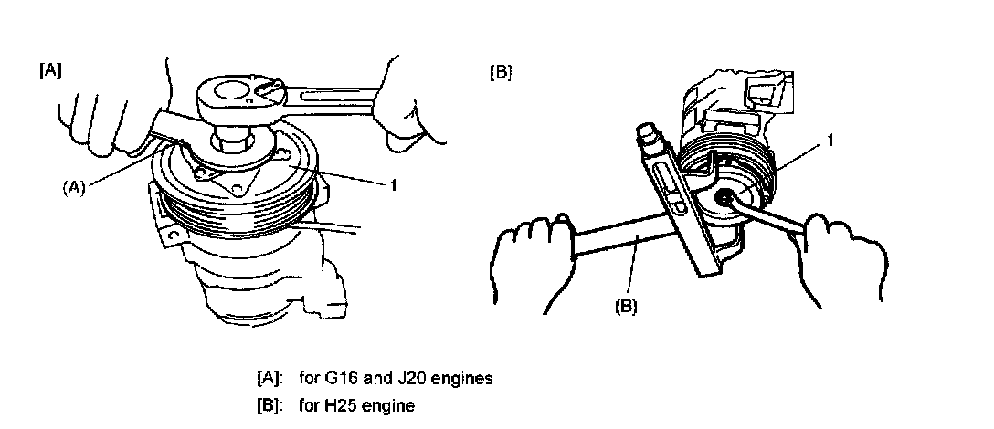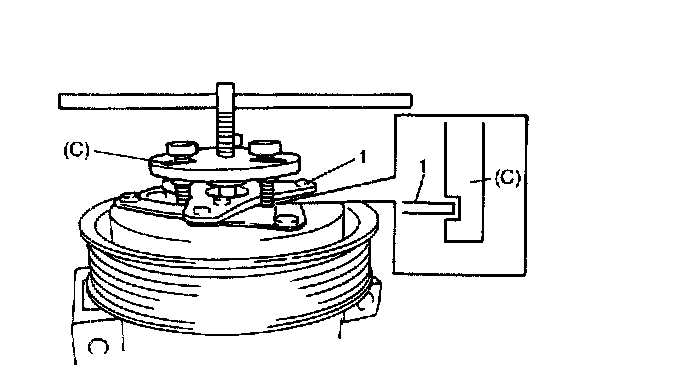 2. Fix armature plate (1) with special tool and remove armature plate bolt and washer.