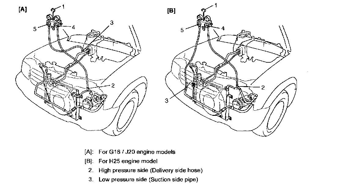 On-Vehicle Inspection1. Install manifold gauge set (1) as shown in figure.