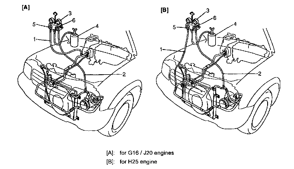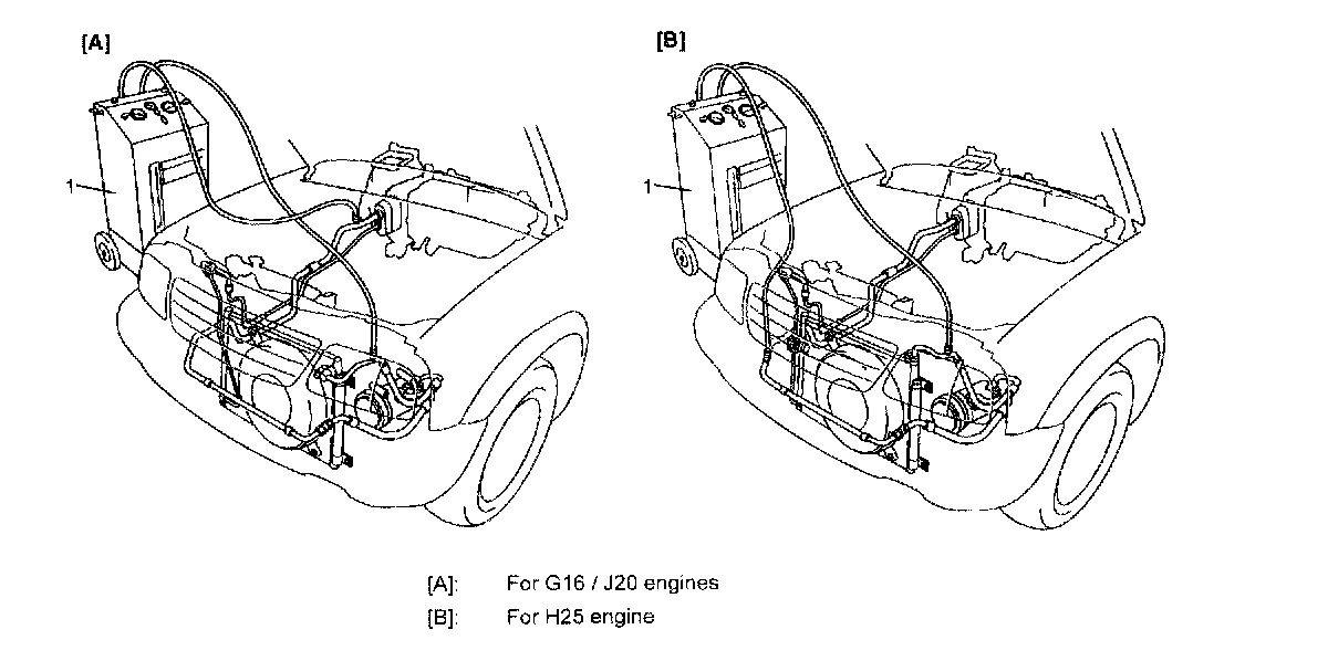 - When discharging refrigerant out of A/C system, always recover it by using refrigerant recovery and recycling equipment. Discharging it into atmosphere would cause adverse effect to environments.