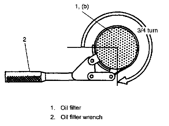 5. Tighten the filter 3/4 turn from the point of contact with the mounting surface using an oil filter wrench.