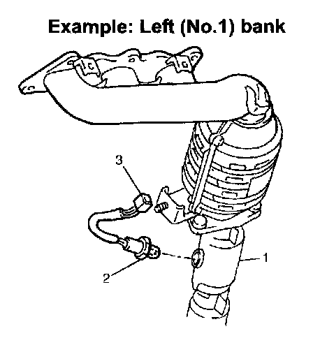 3. Remove oxygen sensor(s) (2) from exhaust manifold(s) (1)