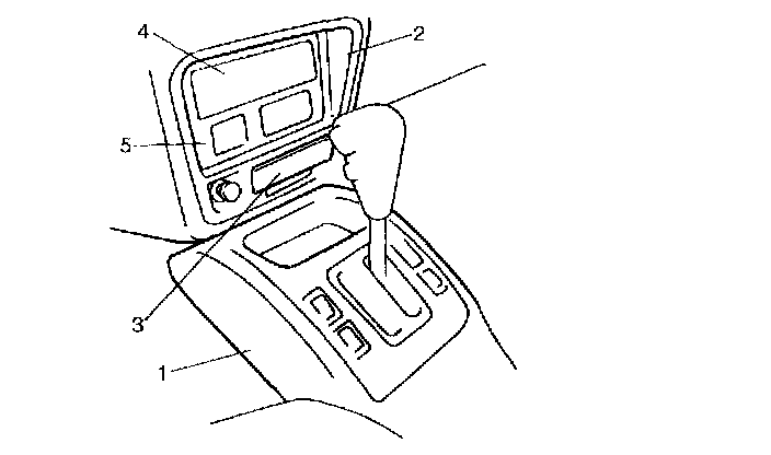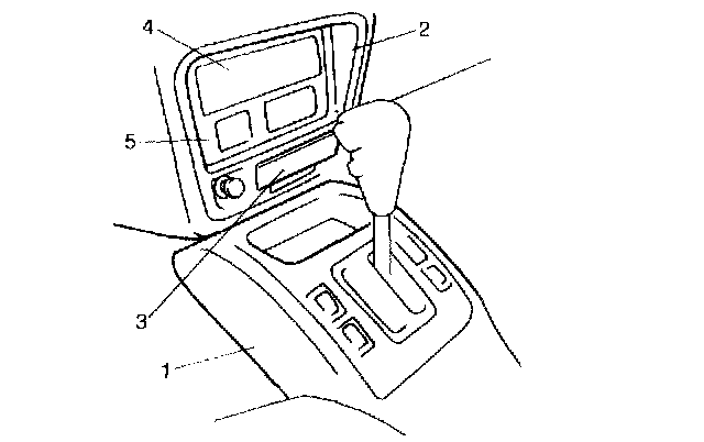 5. Remove ashtray (3) and tuner assembly, clock assembly (5), tuner pocket, radio hole cover (4), etc.