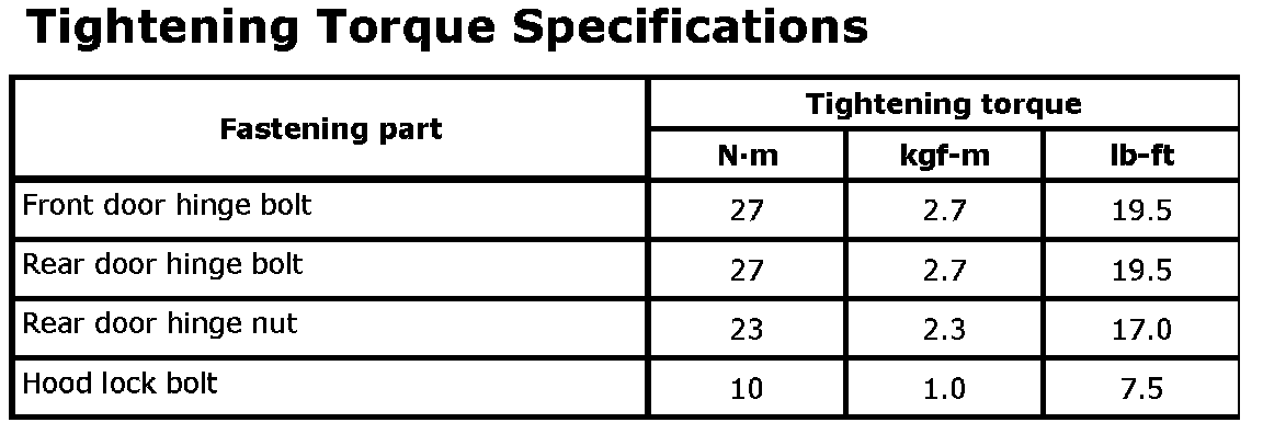 Tightening Torque Specifications