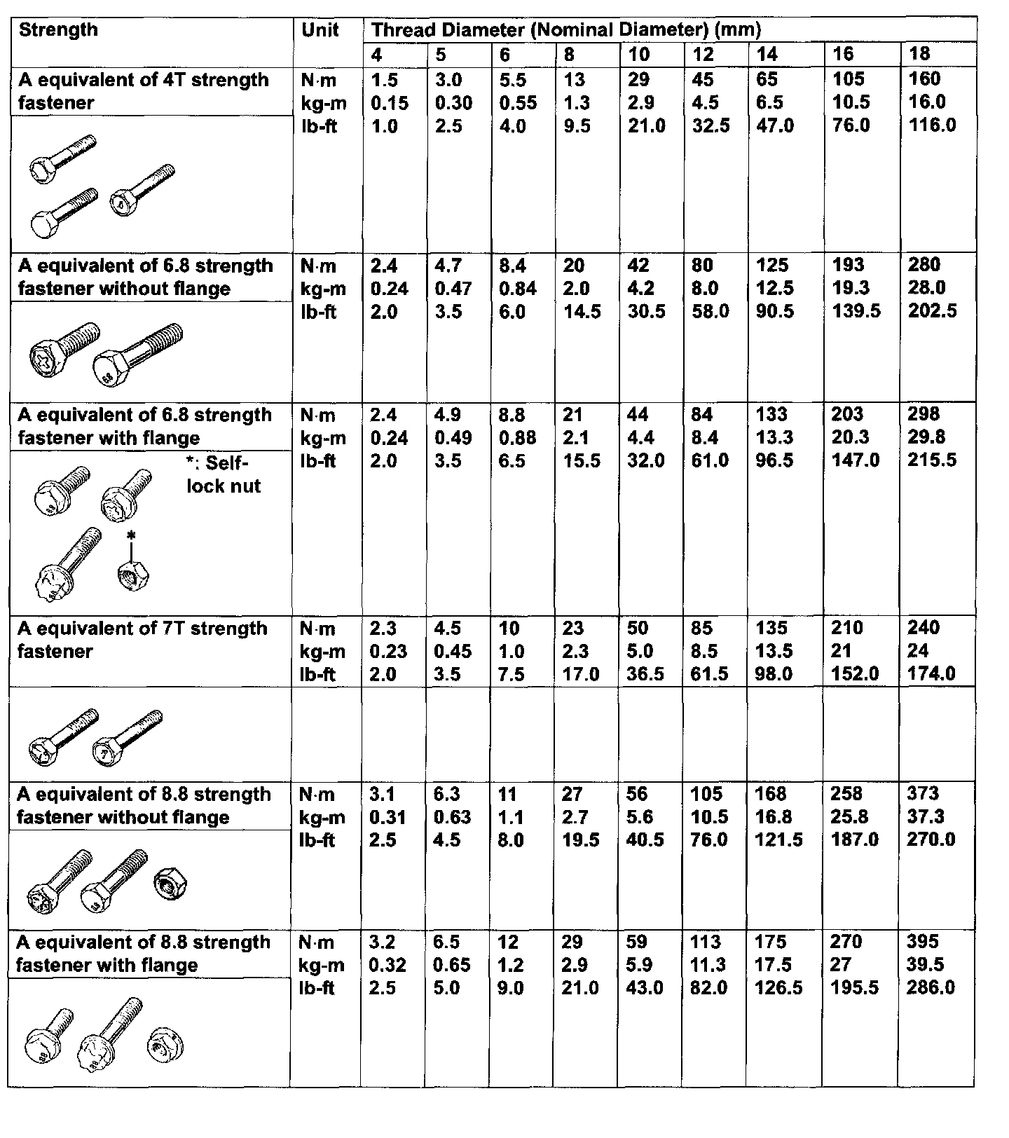 - For the flanged bolt and nut, add 10% to the tightening torque given in the chart below.