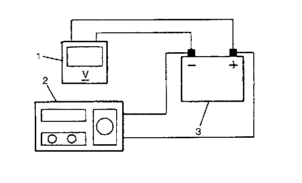 1. Connect voltmeter (1) and battery load tester (2) across terminals of battery (3).