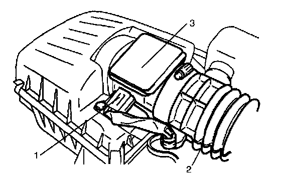 2. Remove air cleaner outlet hose (2) from throttle body and MAF sensor (3).