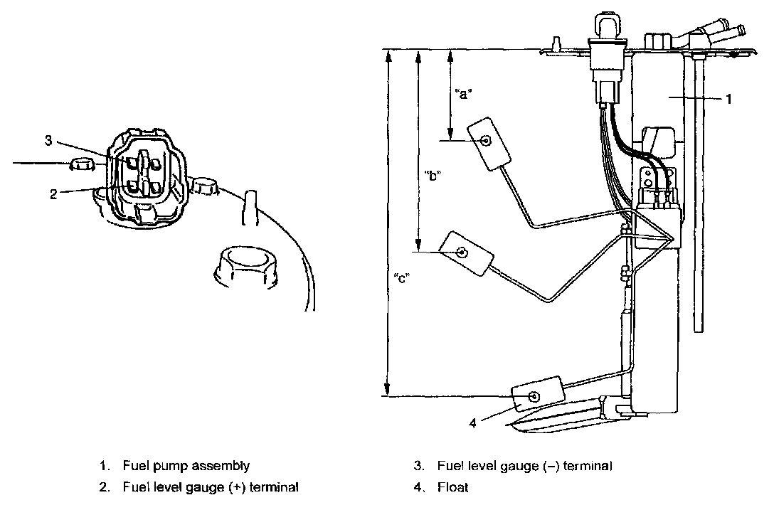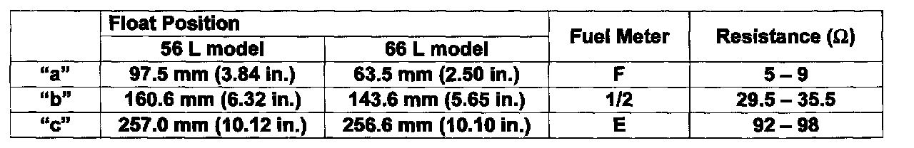 2. Use an ohmmeter to confirm that resistance of sender gauge unit changes with change of float position. If measured valve is out of specification, replace fuel sender gauge.