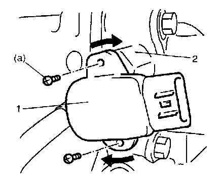 Fit TP sensor (1) to throttle body (2) in such way that its holes are a little away from TP sensor screw holes as shown in figure and turn TP sensor (1) clockwise so that those holes align.