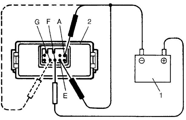 2. Connect (+) wire and (-) wire of 12 V battery (1) to terminal "A", "E" and "F" as shown in figure.