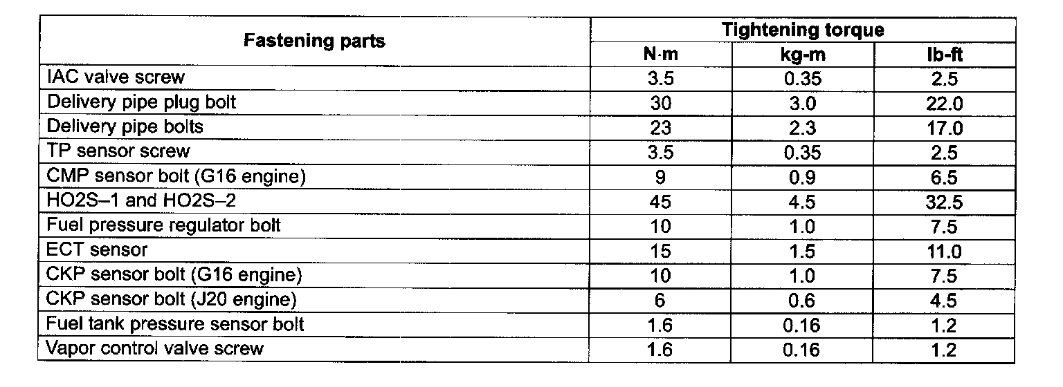 Tightening Torque Specifications: