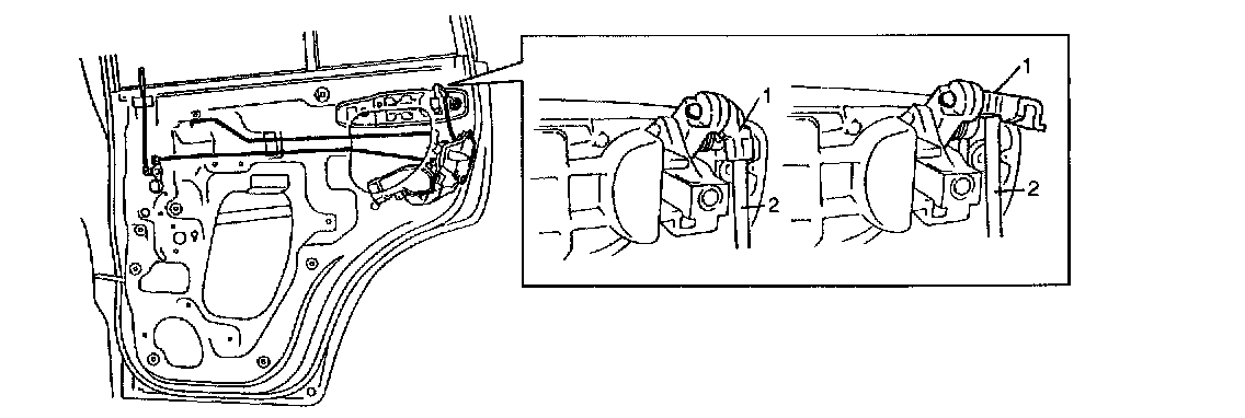 2. Remove door opening control rod (2) and door lock control rod (1).