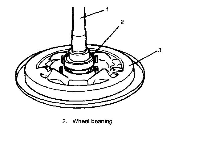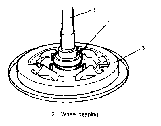 8. Remove brake back plate (3) from rear axle shaft (1).