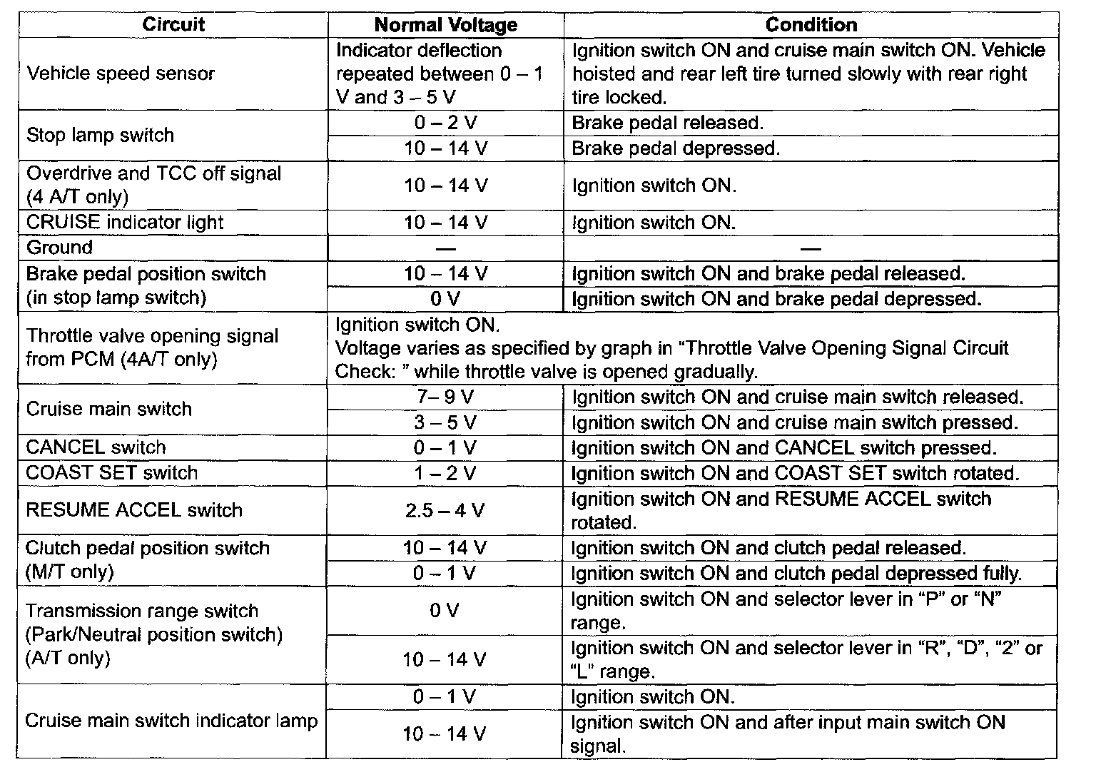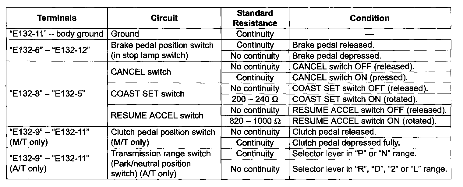 Cruise Control Module and Its Circuit InspectionCAUTION: Cruise control module can not be checked by itself. It is strictly prohibited to connect voltmeter or ohmmeter to cruise control module with coupler disconnected from it.