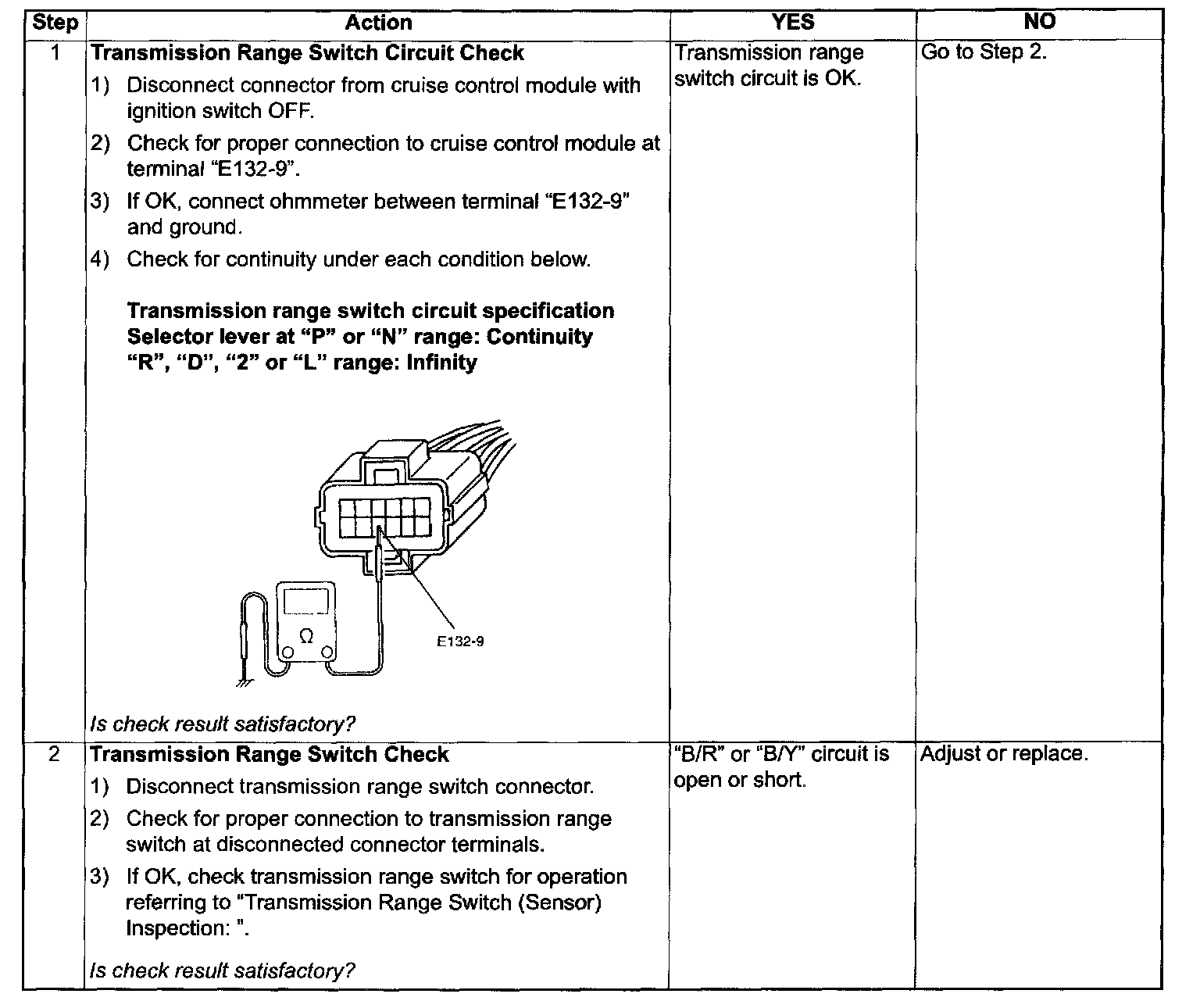 Transmission Range Switch (Park/Neutral Position Switch) Check