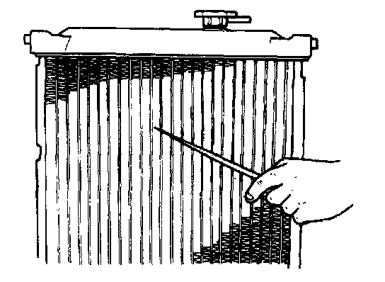 Check radiator for leakage or damage. Straighten bent fins, if any.