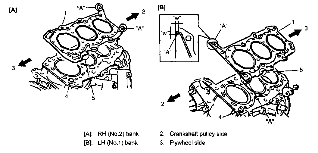3. Apply sealant "A" to cylinder head gasket (1) as shown in the figure.