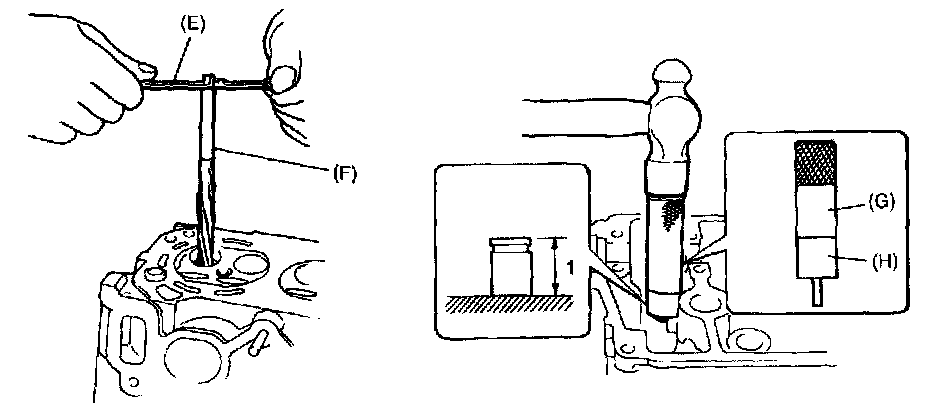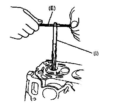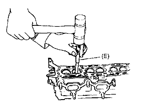 5. Using special tool (E) (Valve guide remover), drive valve guide out from combustion chamber side to valve spring side.