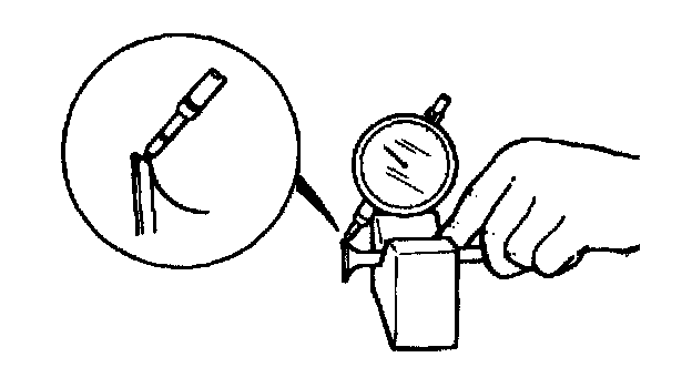 ^ Check each valve for radial runout with a dial gauge and "V" block.