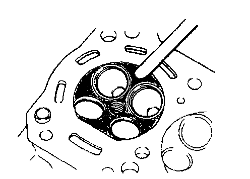 ^ Inspect each valve for wear, burn or distortion at its face and stem and, as necessary, replace it.