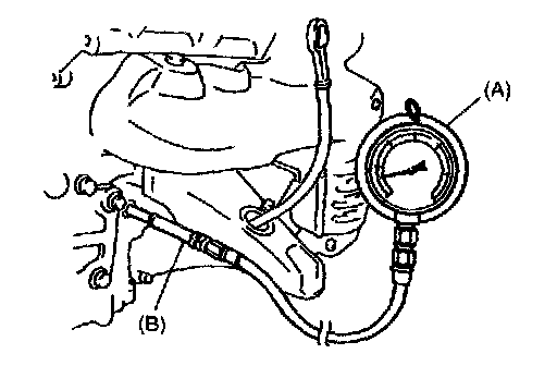 For LH steering vehicle, use oil pressure gauge (special tool (A) with special tool (B) instead of the steel adaptor supplied in special tool (A).