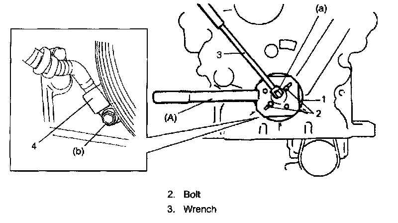 CAUTION: Be sure to use the following bolt for fixing special tool to crankshaft pulley.
