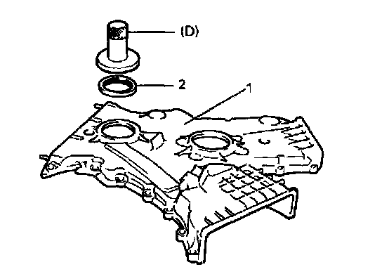 NOTE: When installing new oil seal, top it in until its surface is flash with edge of timing chain cover (1). To install oil seal (2), use special tool (bearing installer).