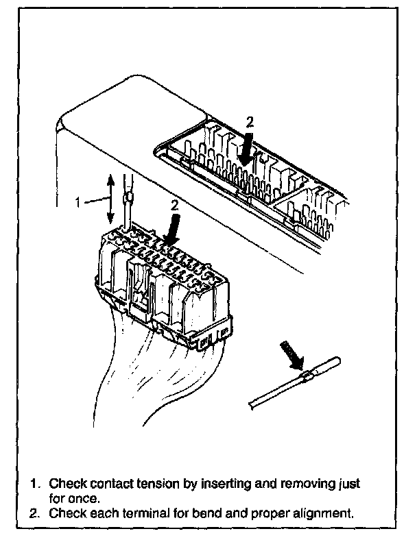 Check each connector terminal in problem circuits carefully to ensure good contact tension by using the corresponding mating terminal.