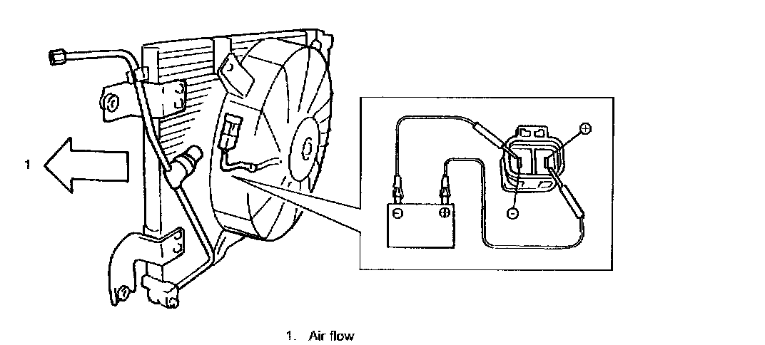 - Connect battery to condenser fan motor as shown, then check that the condenser fan motor operates smoothly.