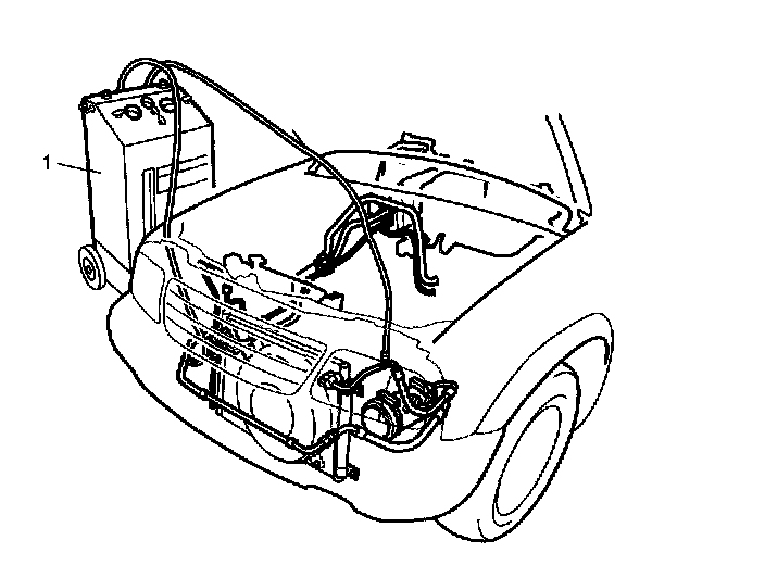 - When discharging refrigerant out of A/C system, always recover it by using refrigerant recovery and recycling equipment (1). Discharging it into atmosphere would cause adverse effect to environments.