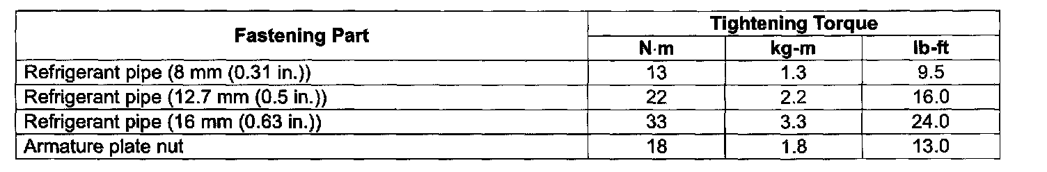 Tightening Torque Specifications: