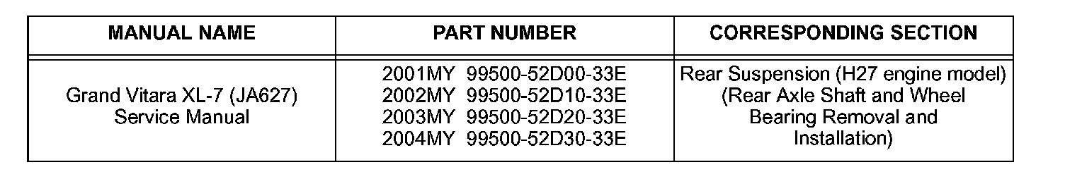 SERVICE MANUAL UPDATE ON REAR SUSPENSION AXLE SHAFT