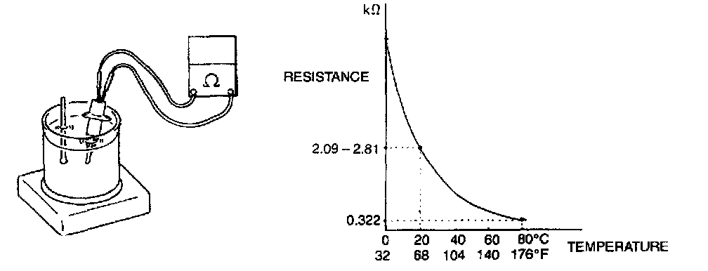 If measured resistance doesn't show such characteristic as shown in the figure, replace IAT sensor.